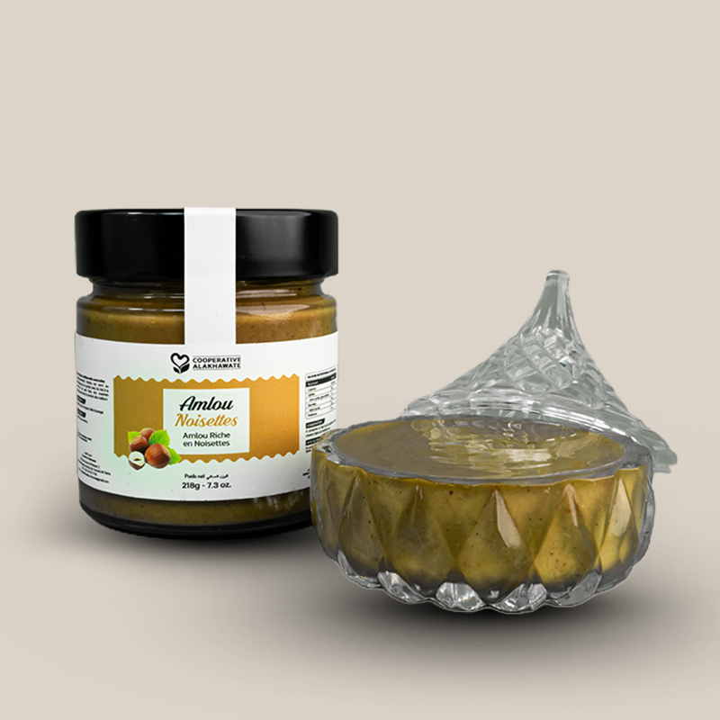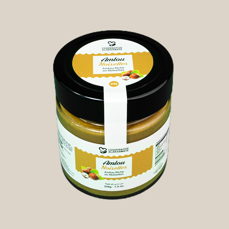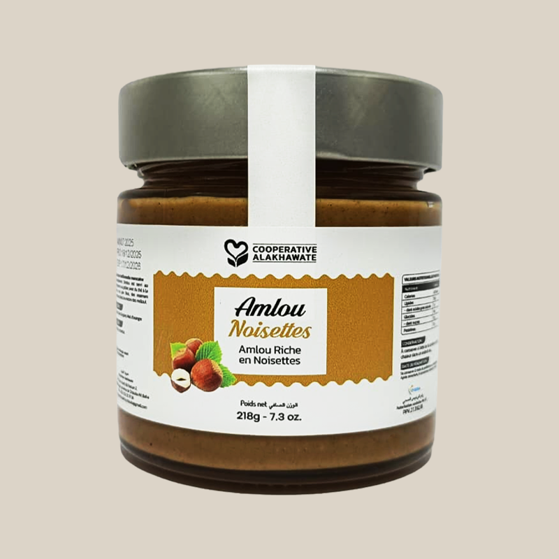 Laissez-vous transporter par la richesse aromatique de notre Amlou aux Noisettes. Une création signature de la Coopérative Alakhawate qui sublime la noisette grillée dans un mélange onctueux et naturel.